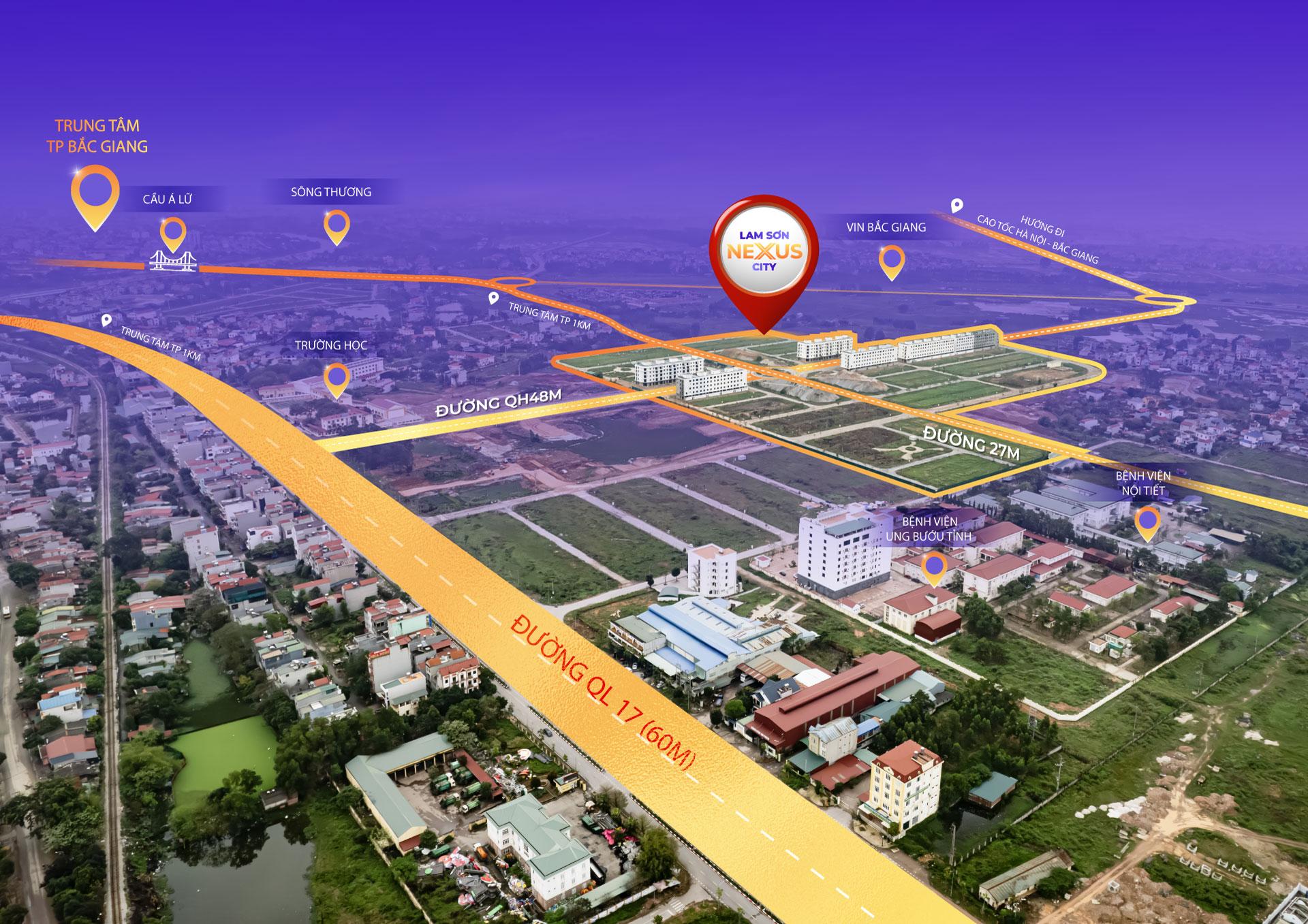 Chỉ 2 phút qua cầu Á Lữ hoặc cầu Mỹ Độ vào trung tâm TP Bắc Giang, cạnh trường học các cấp, bệnh viện tỉnh, chợ dân sinh,…